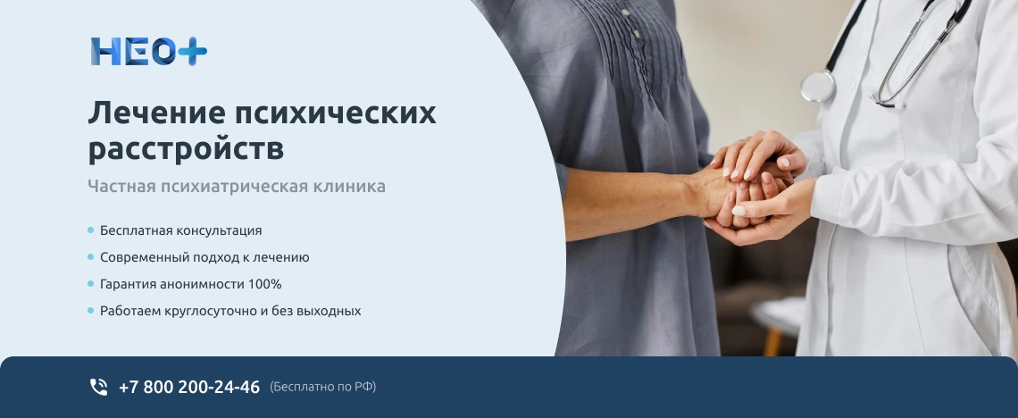 Записаться на прием к врачу-психиатру можно на официальном сайте клиники «НеоПлюс» в Кремёнках или по телефону ☎️ +7 (800) 200-24-46. Звоните нам, не запускайте проблему. Мы знаем, как вернуть здоровье и покой в Вашу семью!